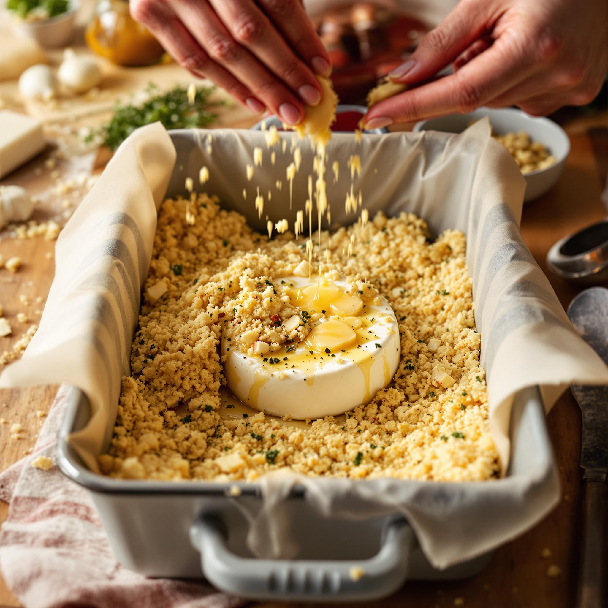 Zonder sneetjes in de kaas kan de warmte niet goed doordringen, wat resulteert in een onevenwichtige gaarheid. Maak altijd een paar kleine sneetjes in de bovenkant van de camembert voordat je hem in de oven zet.