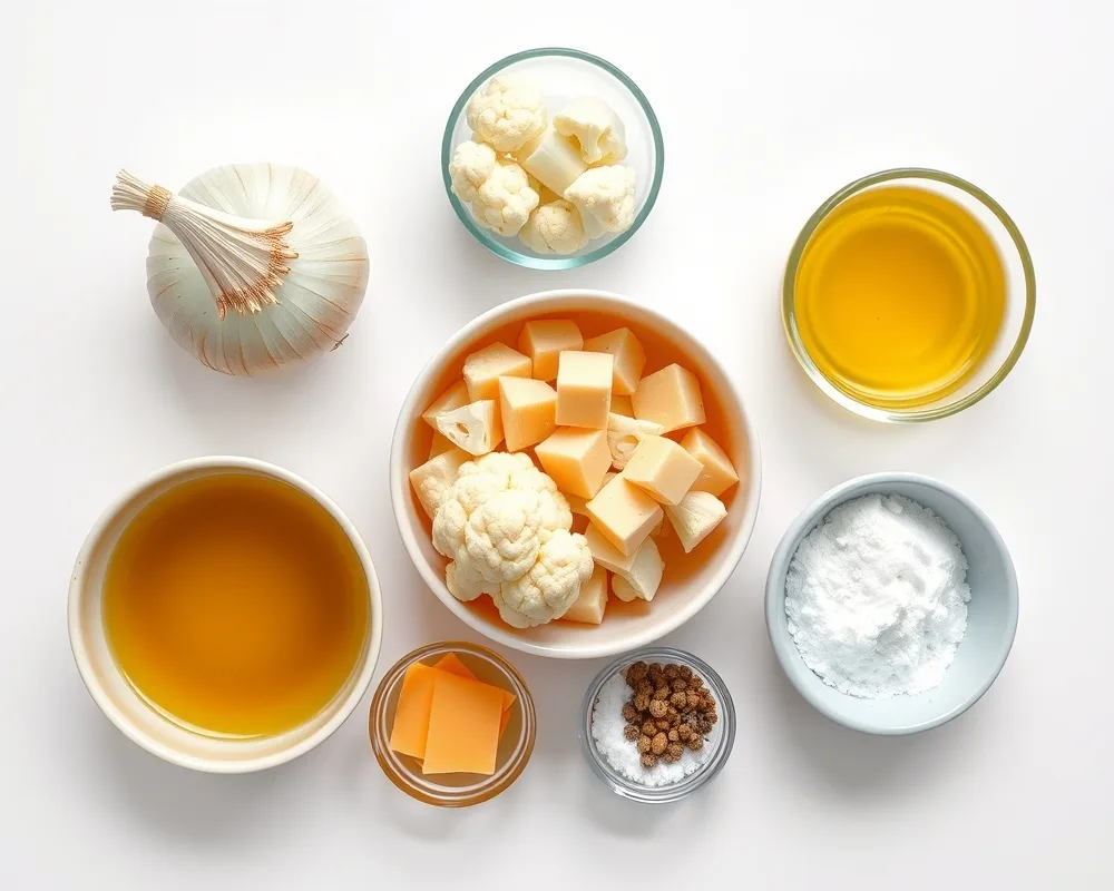 Ingrediënten voor geroosterde bloemkoolsoep met cheddar en knoflook
